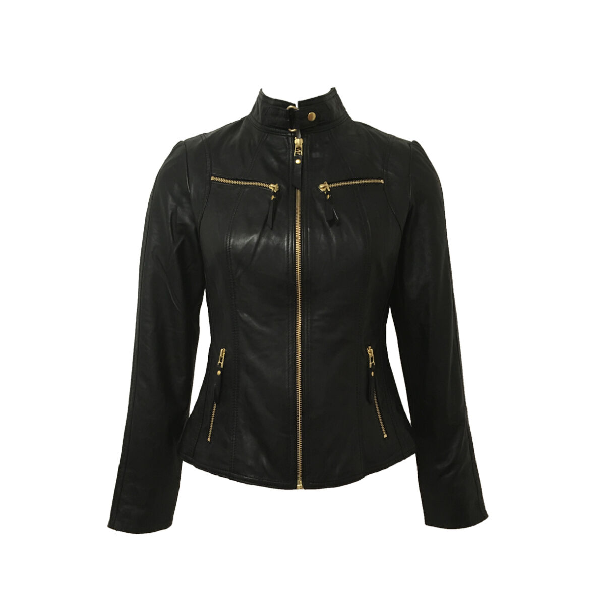 Klassisk skindjakke fra BTF - CPH med cool guld lynlåsdetaljer ved lommerne og i ærmet.