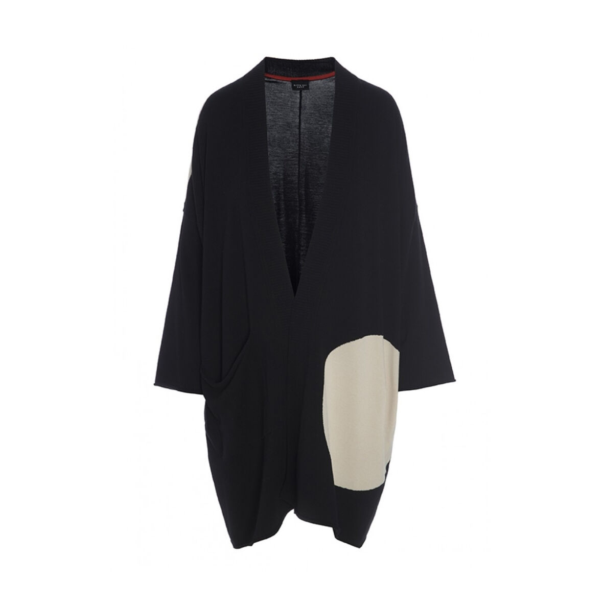 Cardiganen har en flot pasform, som falder rigtig fint med lange ærmer og stor, strikket ribkant ned langs fronten.
