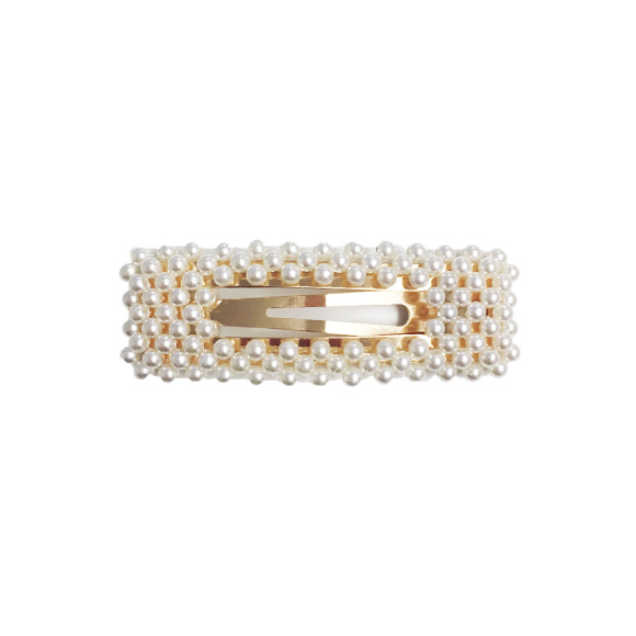 Smukt aflangt perle-hårspænde i guld med hvide perler.