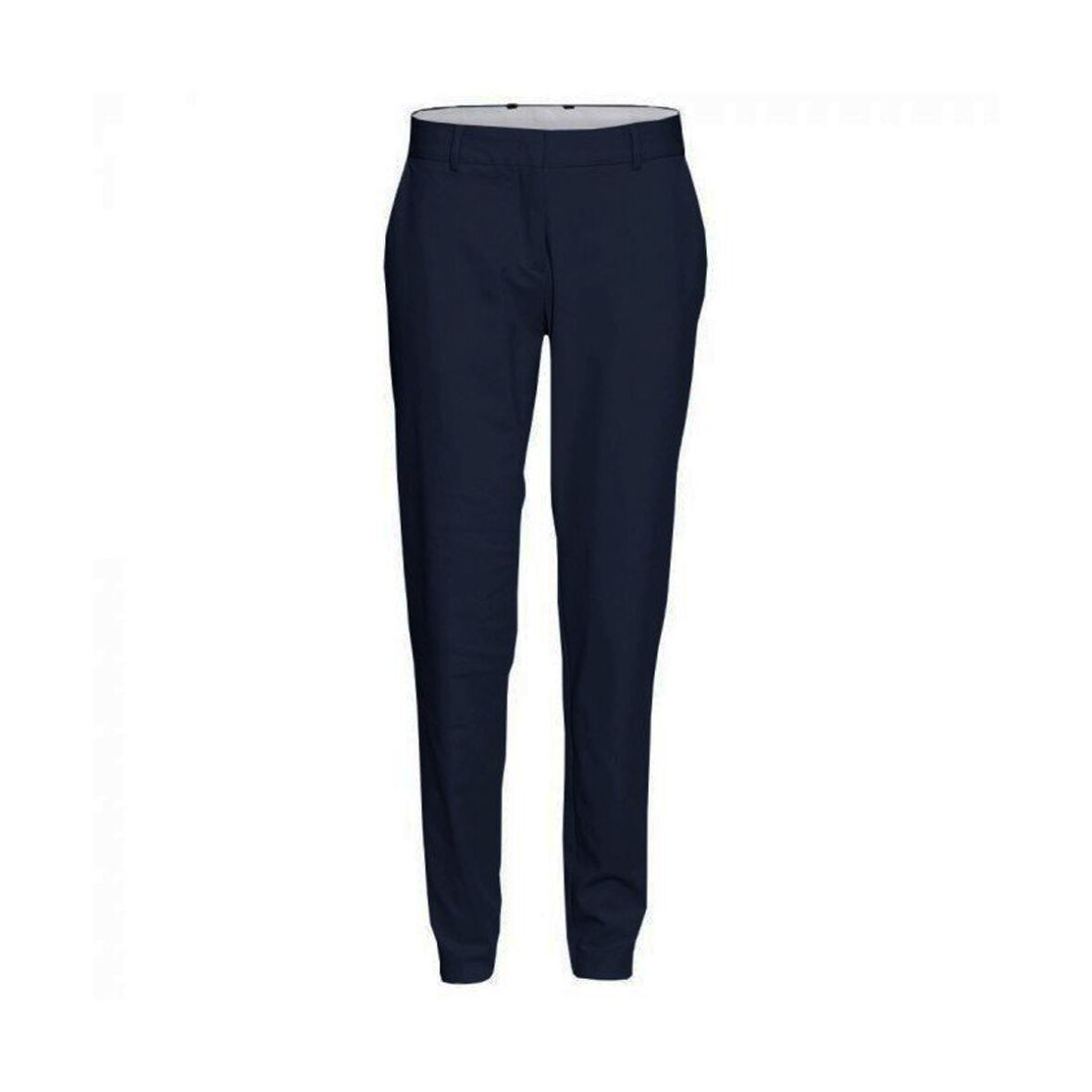 Klassisk navy PBO buks med pressefolder, sidelommer og pyntelommer bagpå.