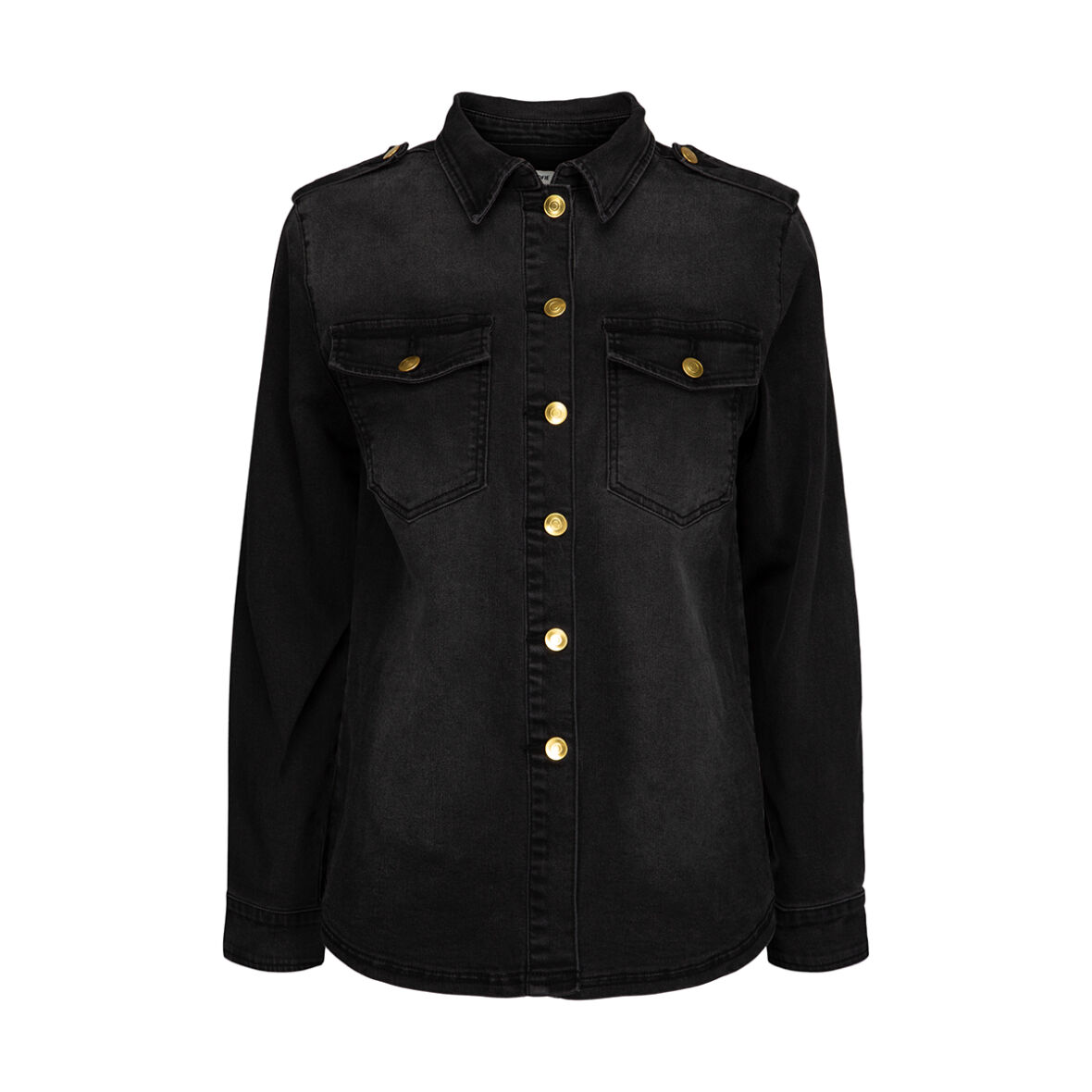 Skjorten har store guldknapper på fronten samt brystlommer.