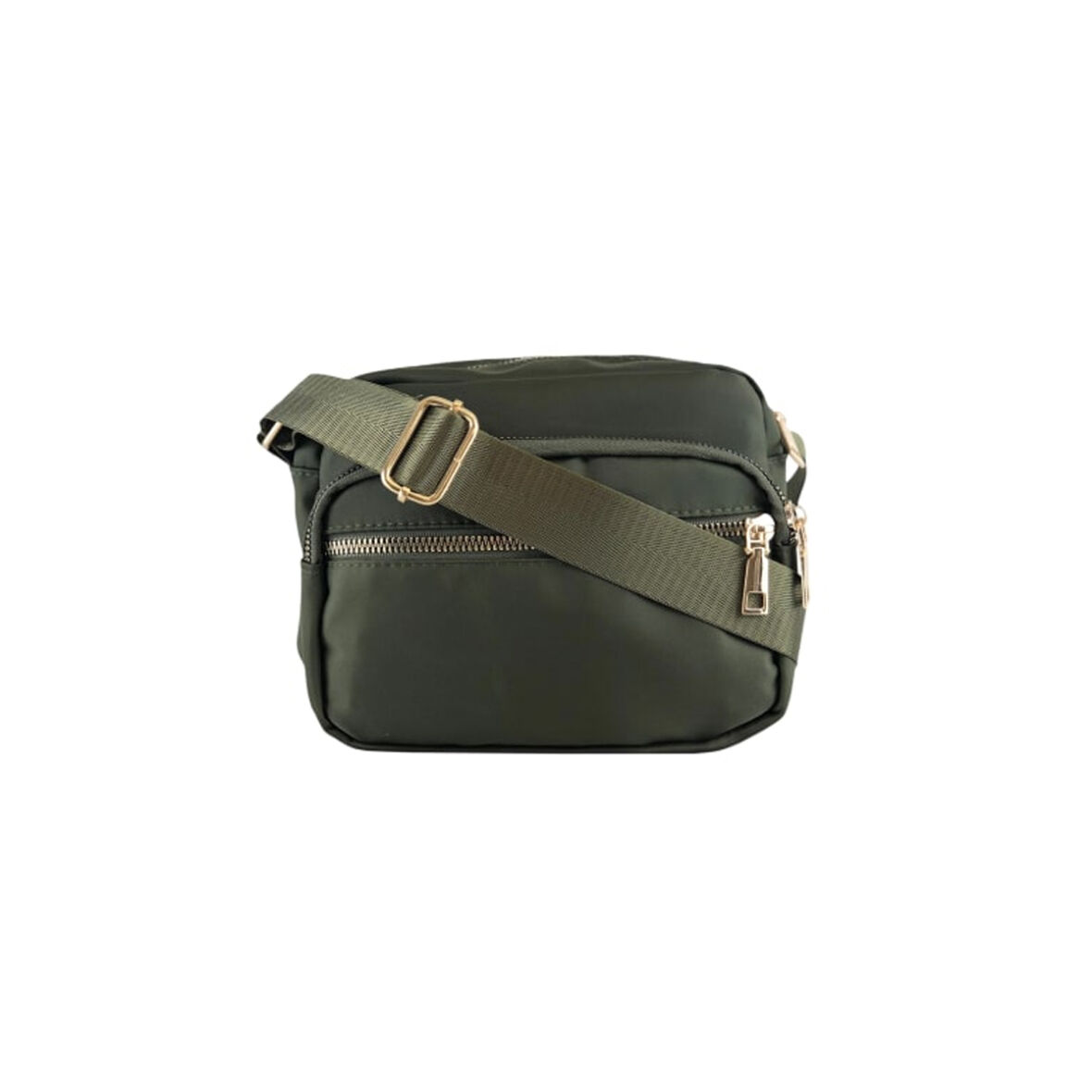 Smart nylon taske fra Black Colour i army og guld detaljer.