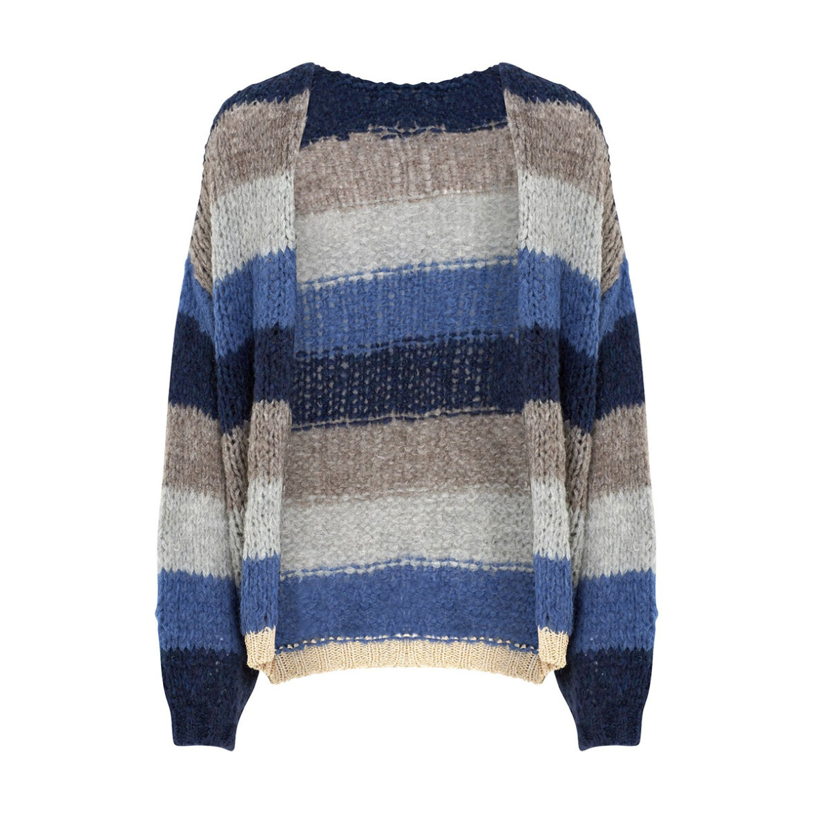 Flot stribet strik cardigan fra Noella med lurex ribkant.