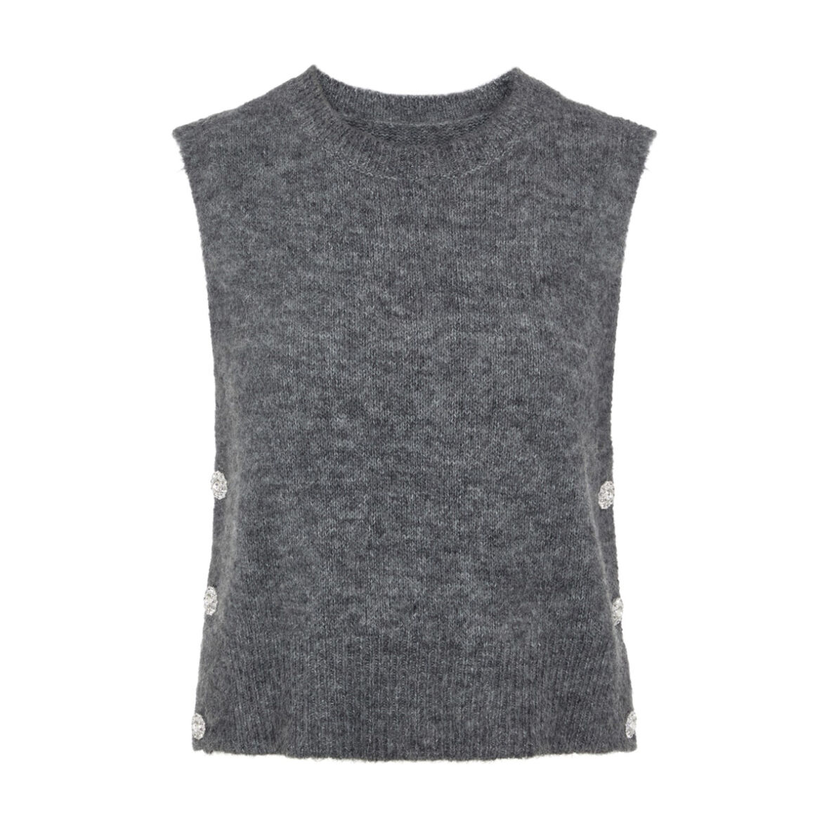 Vesten har ribkant ved ærmegabet, bunden og halsen.