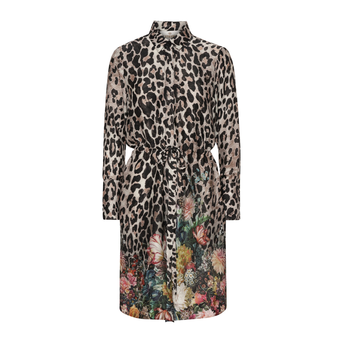 Lækker leopard skjorte kjole fra Karmamia med lange ærmer.