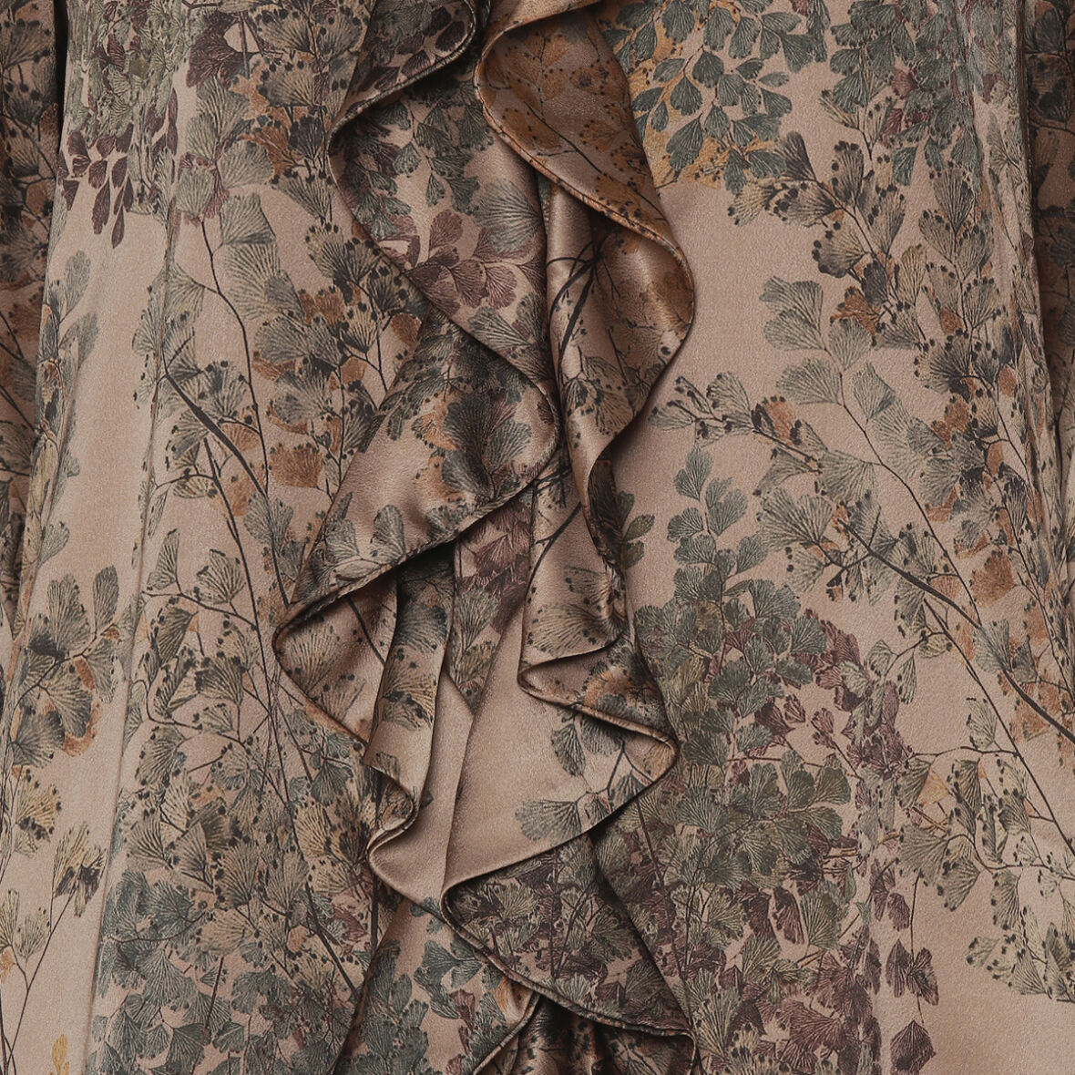 Smuk kimono kjole fra Karmamia med flæsedetaljer på fronten.