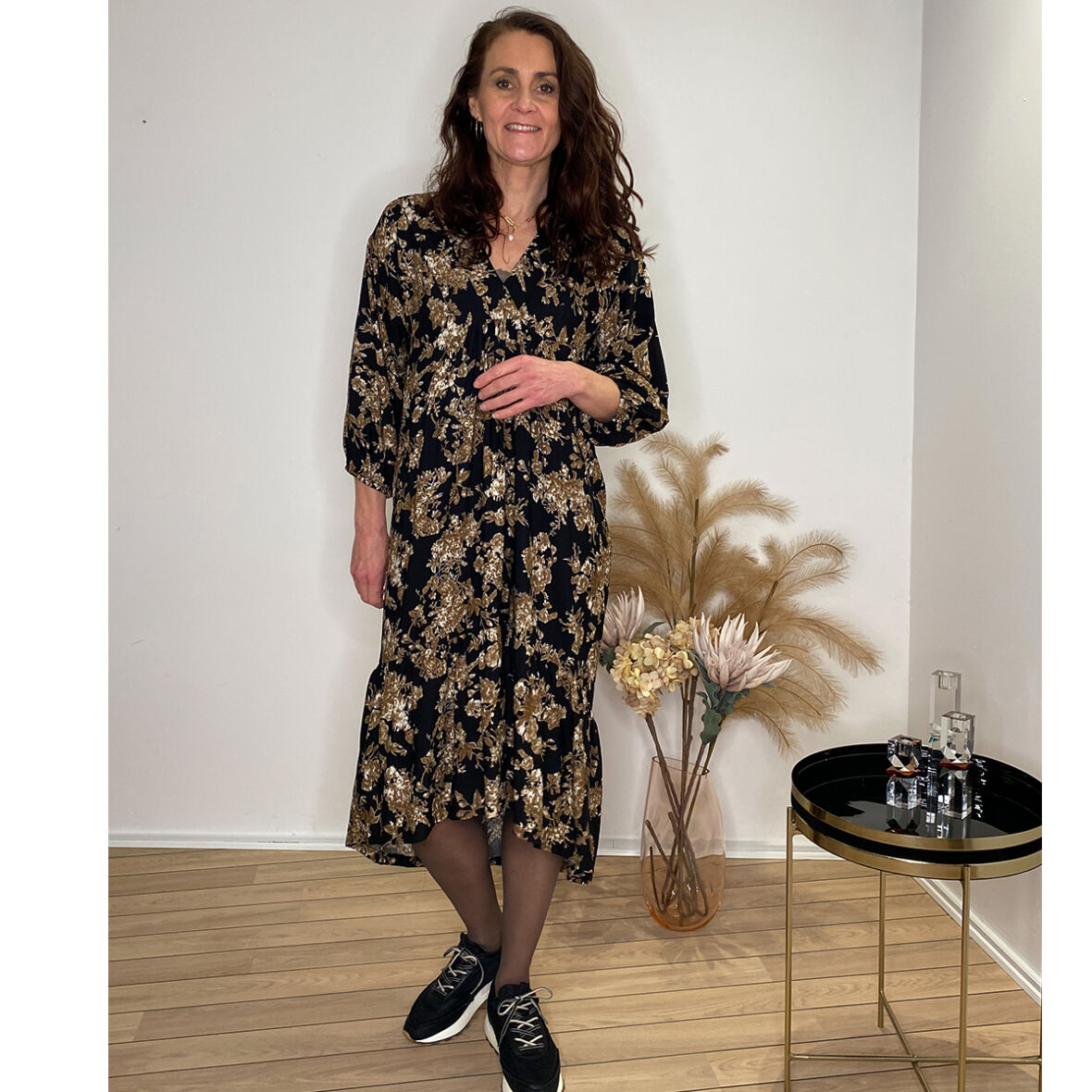 Flot kjole fra Luxzuz i et smart print med 3/4 ærmer med elastikkant.