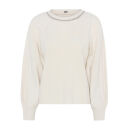 Smuk hvid strik med rib foran og bagpå. Ærmer er strikket i glatstrik og med fin snonings detalje som afsluttes af rib.
