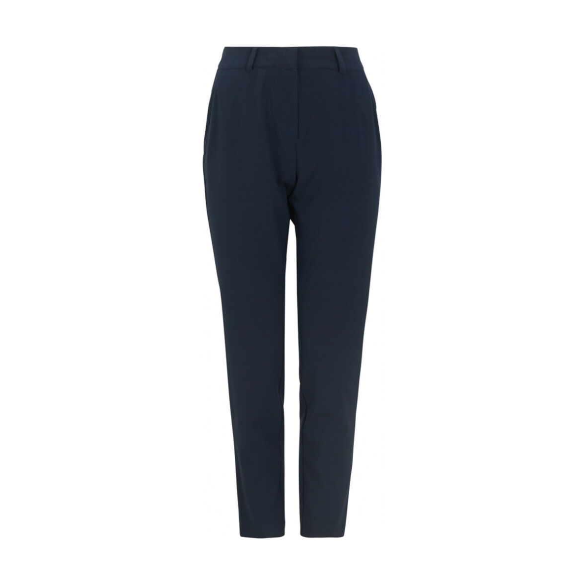 Buksen har skrålommer, detalje lommer bagpå og har bæltestropper i livet.