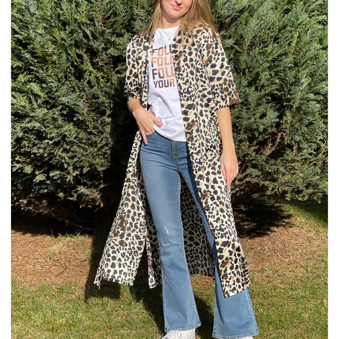 Kjolen er gennemknappet, har korte ærmer og medfølger et bindebånd.