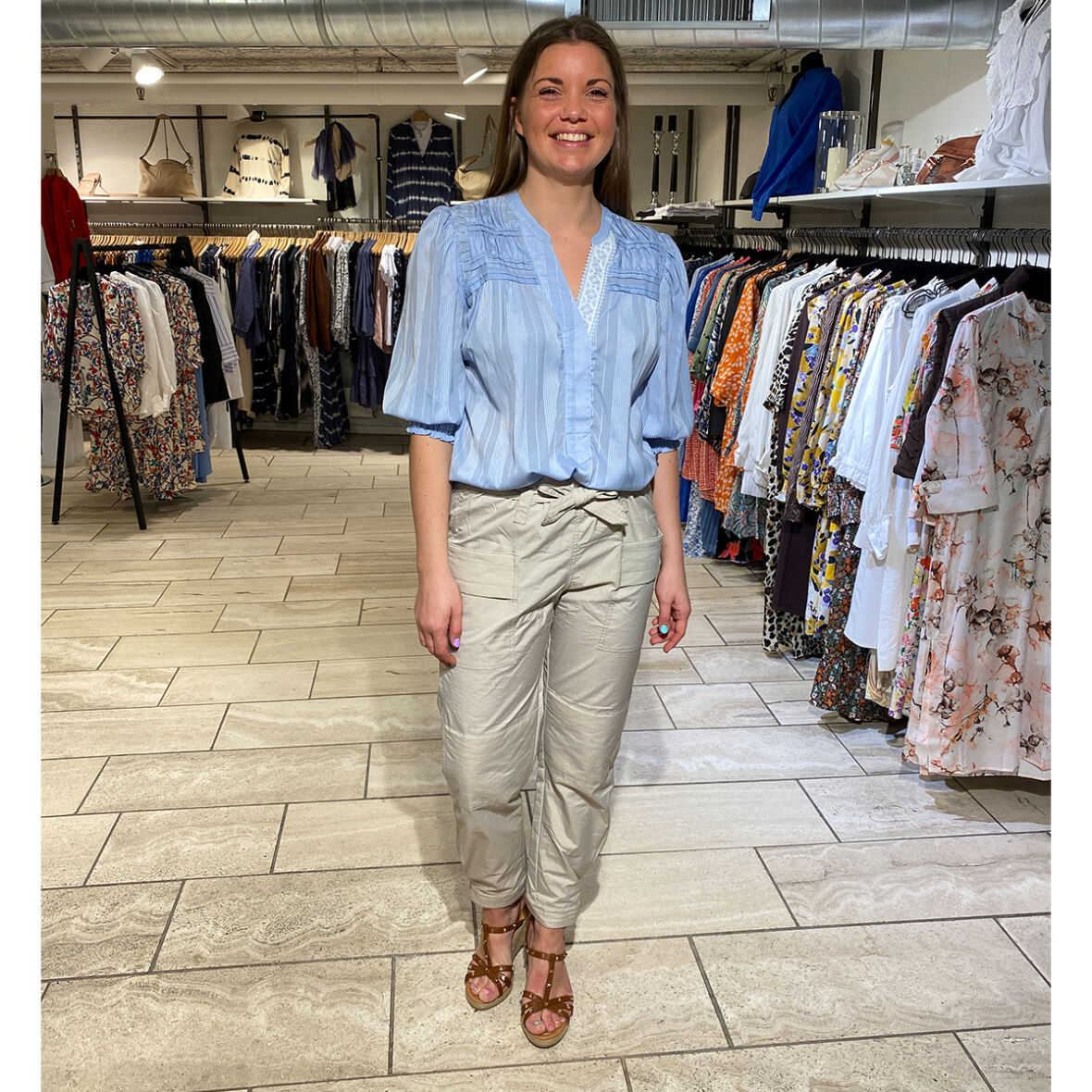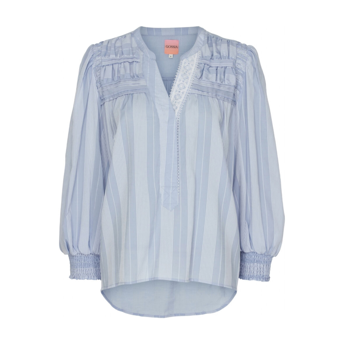 Smuk bluse fra Gossia med 3/4 ærme og stolpeåbning, som er dekoreret med flot blonde.