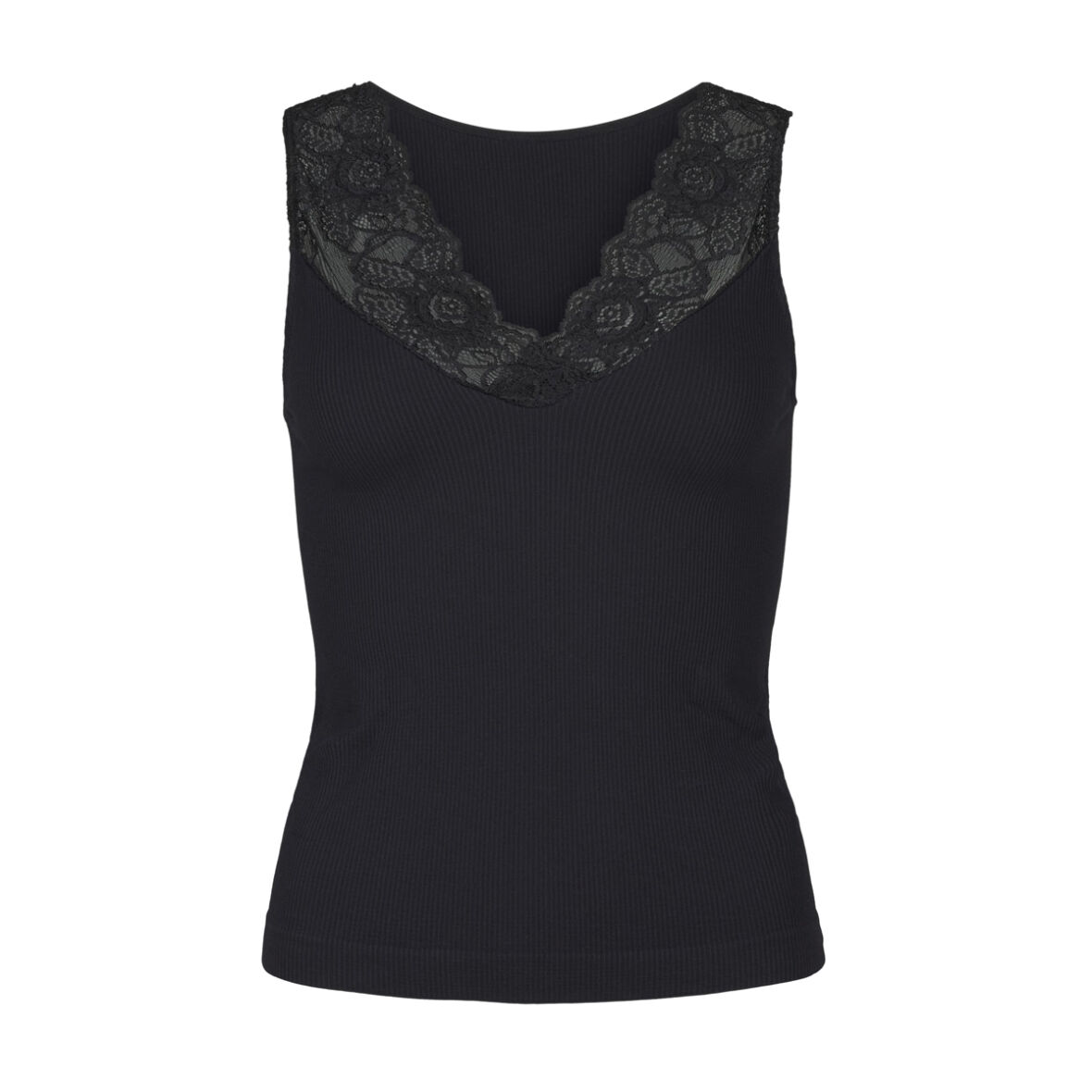 Super lækre rib top fra Tim&Simonsen med flot V-udskæring med blonde detaljer.