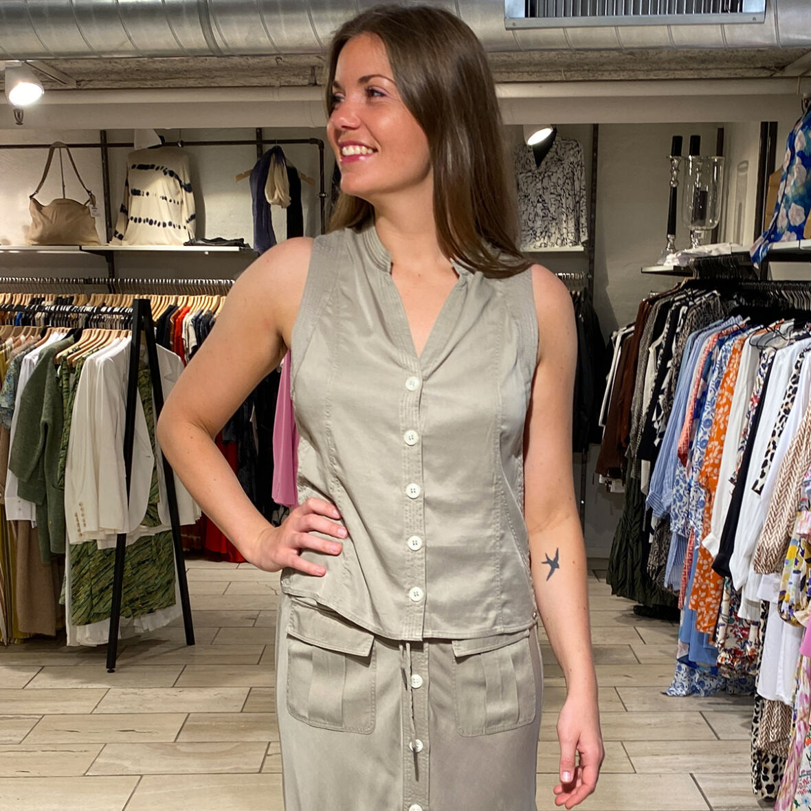 Sej vest fra Gustav med v udskæring og gennem knappet.