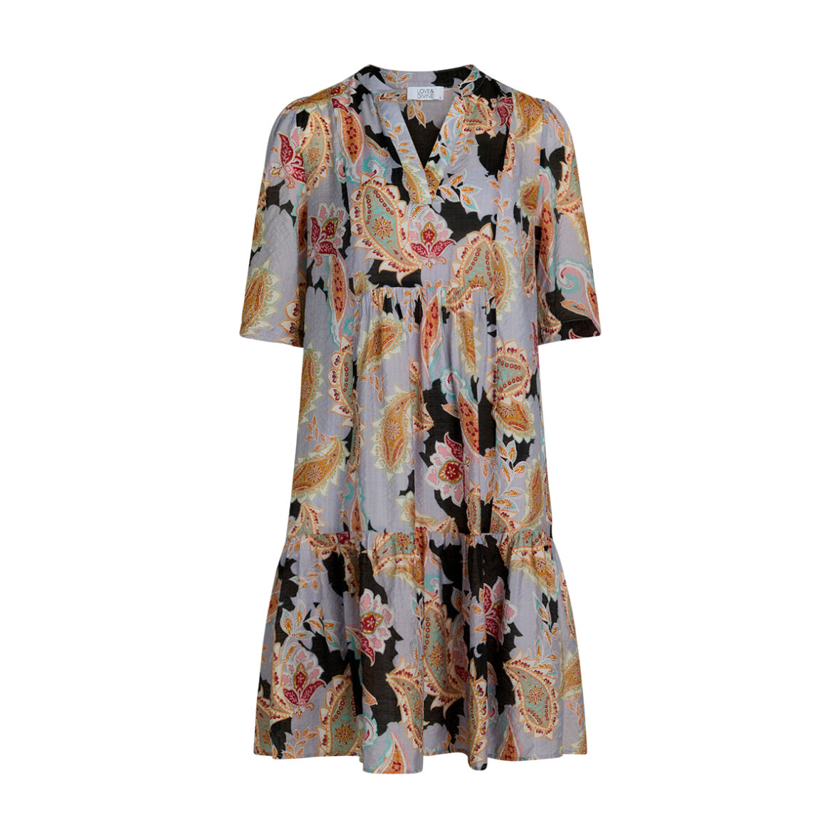 Kjole i flot paisley print med korte ærmer fra Love & Divine.