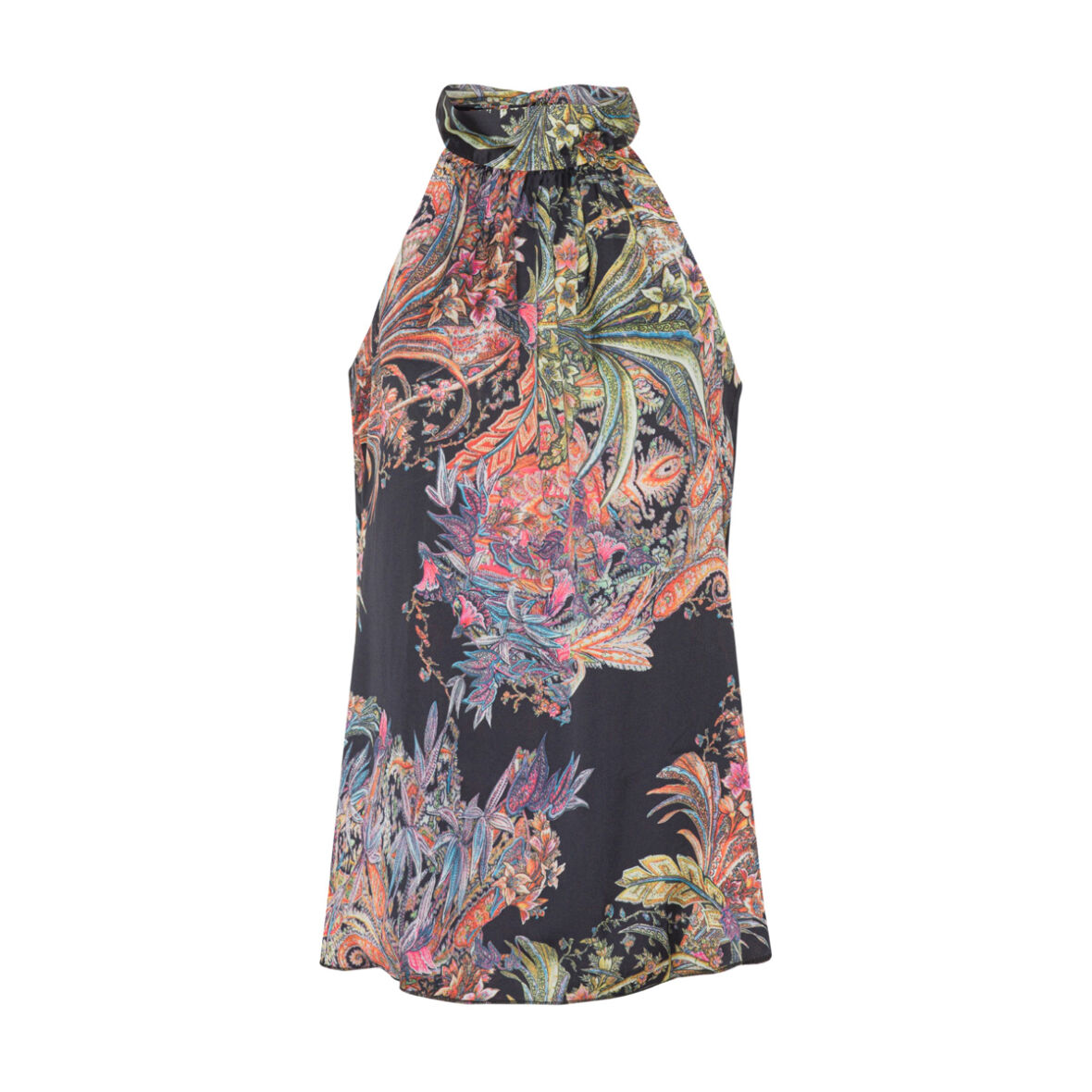 Toppen har bindebånd ved halsen, og har det smukkeste fald.