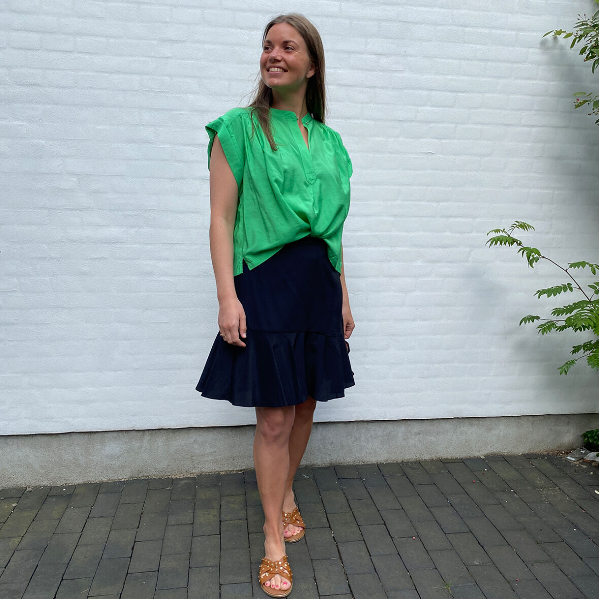 Smuk top i flot grøn farve fra Co'couture med rynke-effekt ved skulderen.