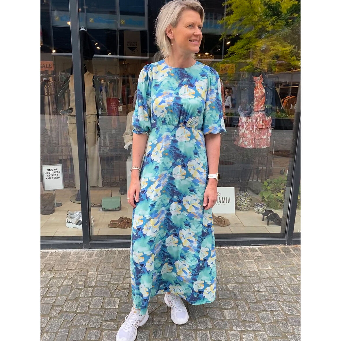 Kjolen lukkes i rykkes med skjult lynlås og har ærmer med smock.