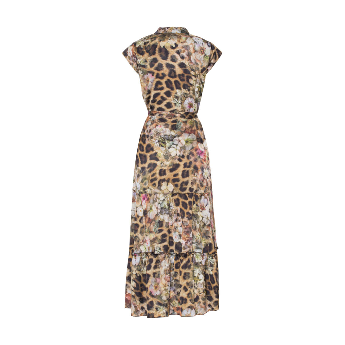 Smuk kjole med smock detalje over skuldrene og korte ærmer.