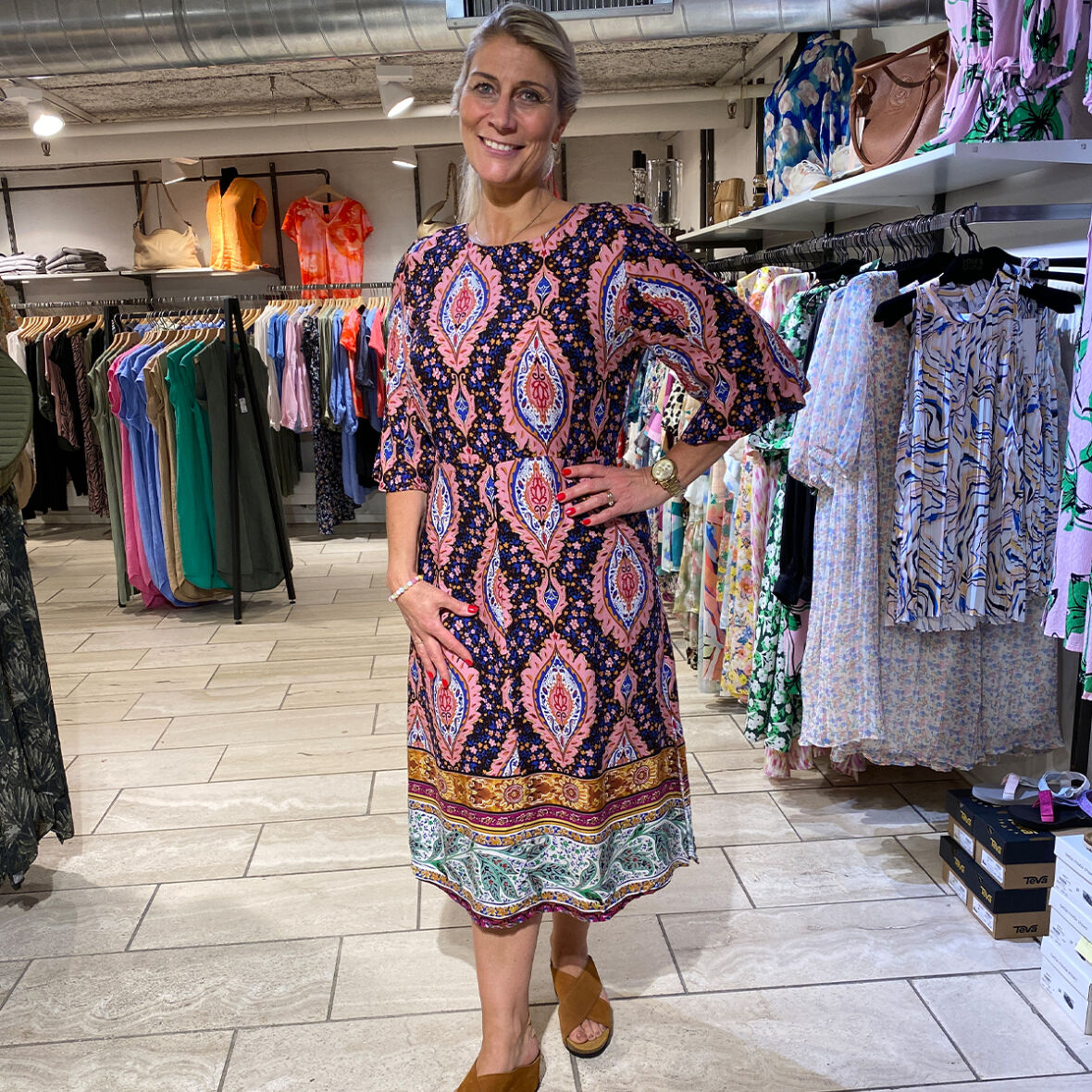 Kjole fra Soulmate i sødt print med løse ærmer og rund hals.