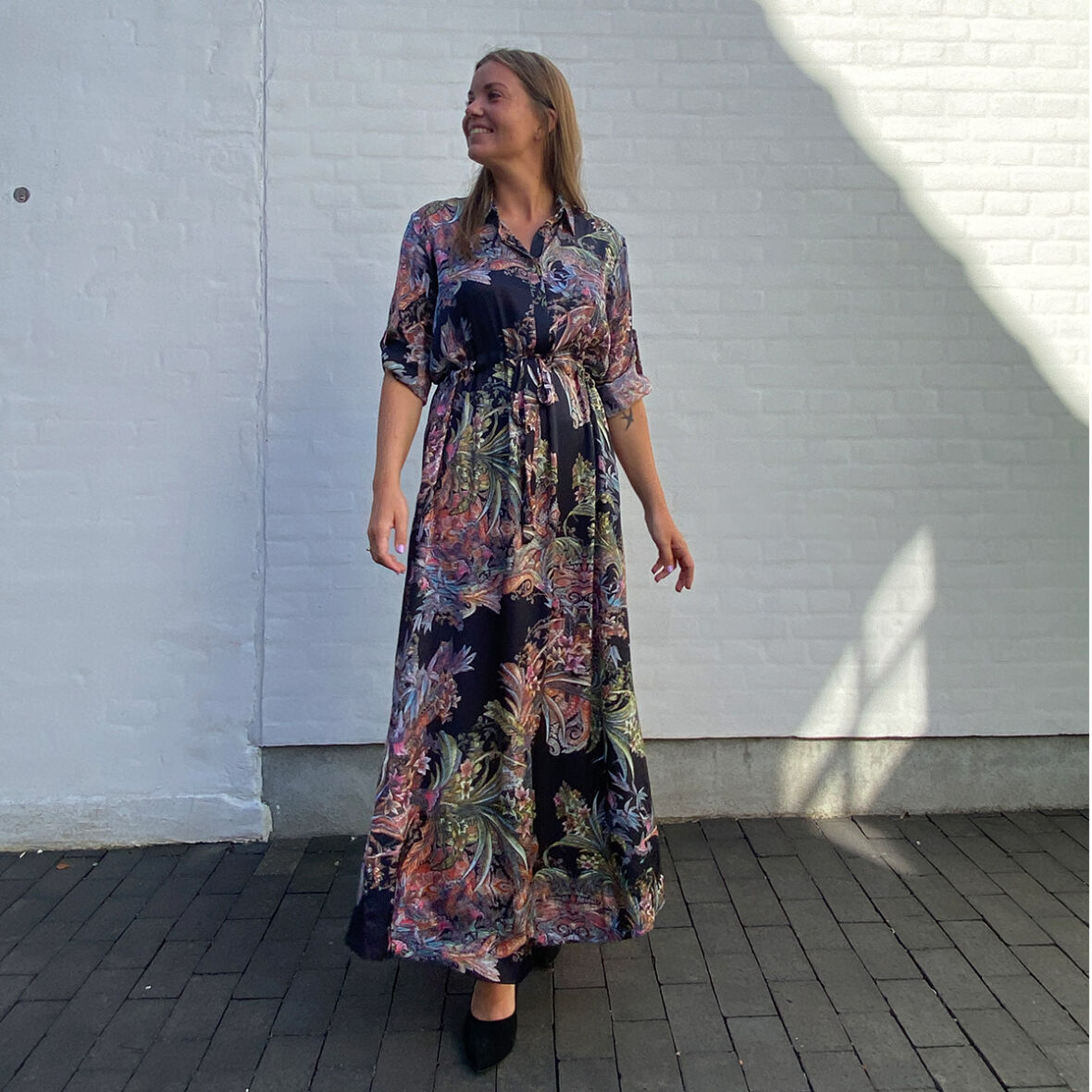 Lækker maxi kjole fra Karmamia i blomstret print med lange ærmer.