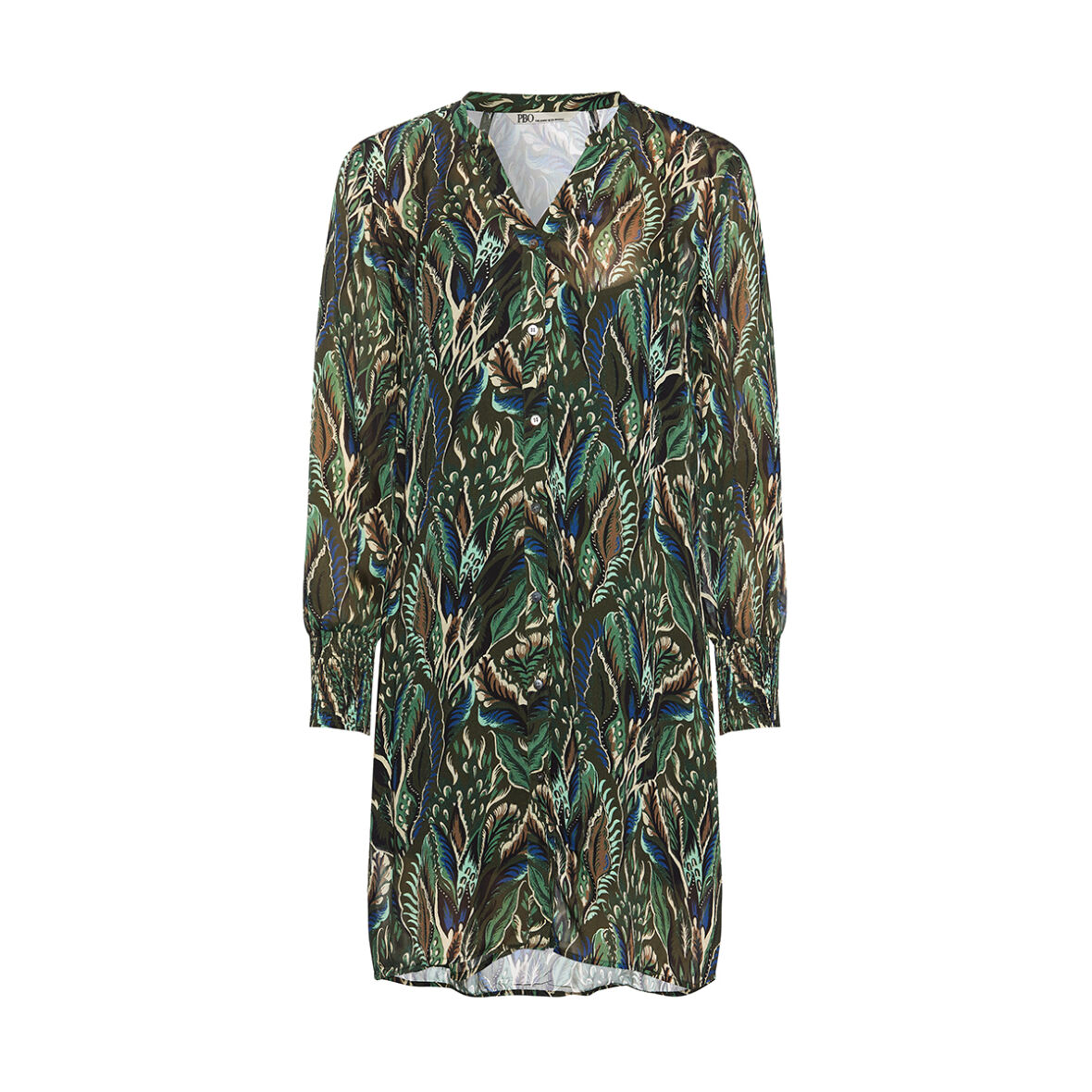Tunikaen fra PBO i et smukt farvemix med lange ærmer med smock ved håndleddet.
