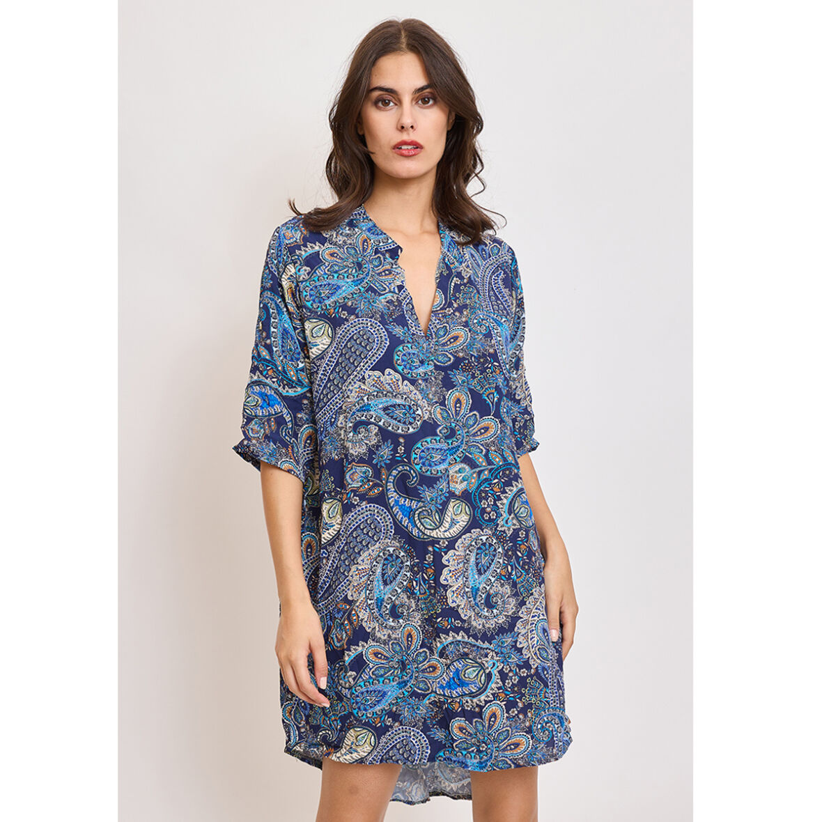 Kjolen har en stolpeåbning samt 3/4 ærmer med smøg.