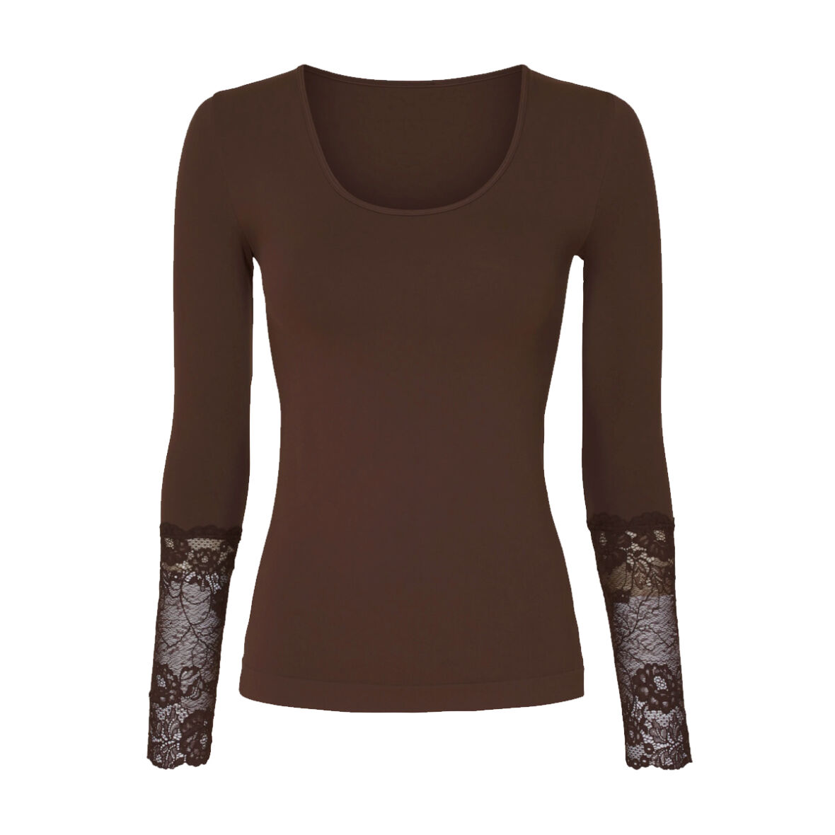 Flot langærmet T-shirt fra tim&simonsen med blonde på ærmet.