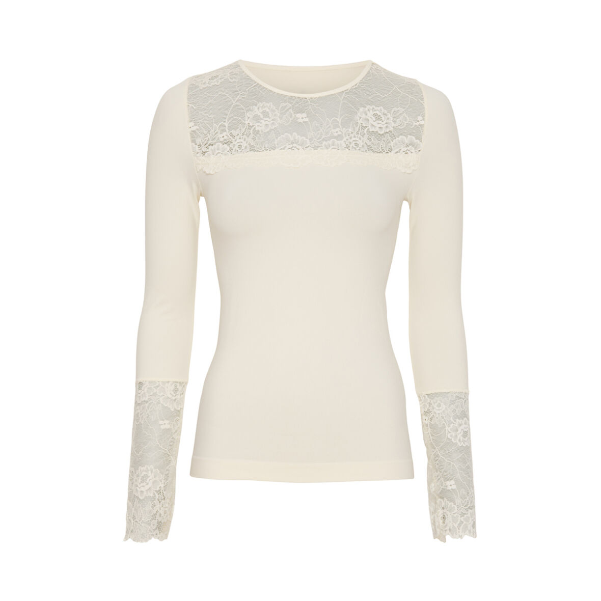 Flot langærmet T-shirt fra Tim&Simonsen med blonde på ærmet og brystet.