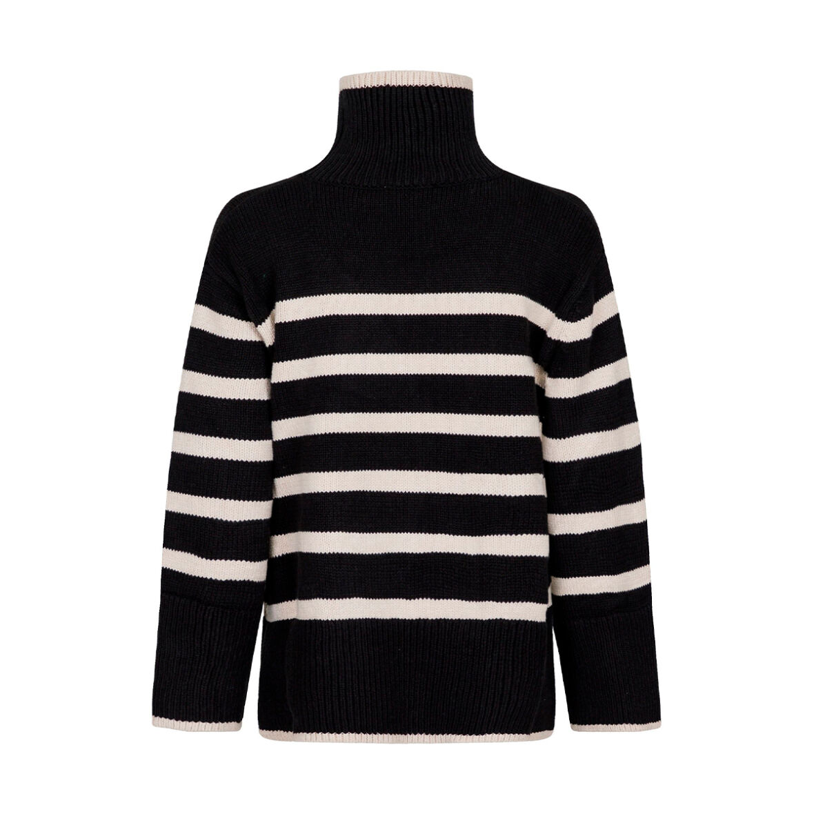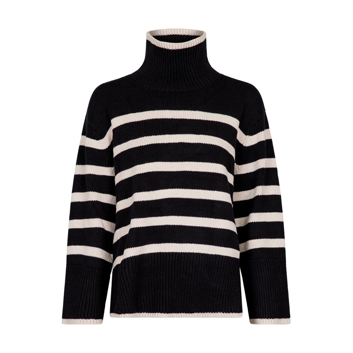 Stribet strik bluse fra Neo Noir med høj hals og brede ærmer.