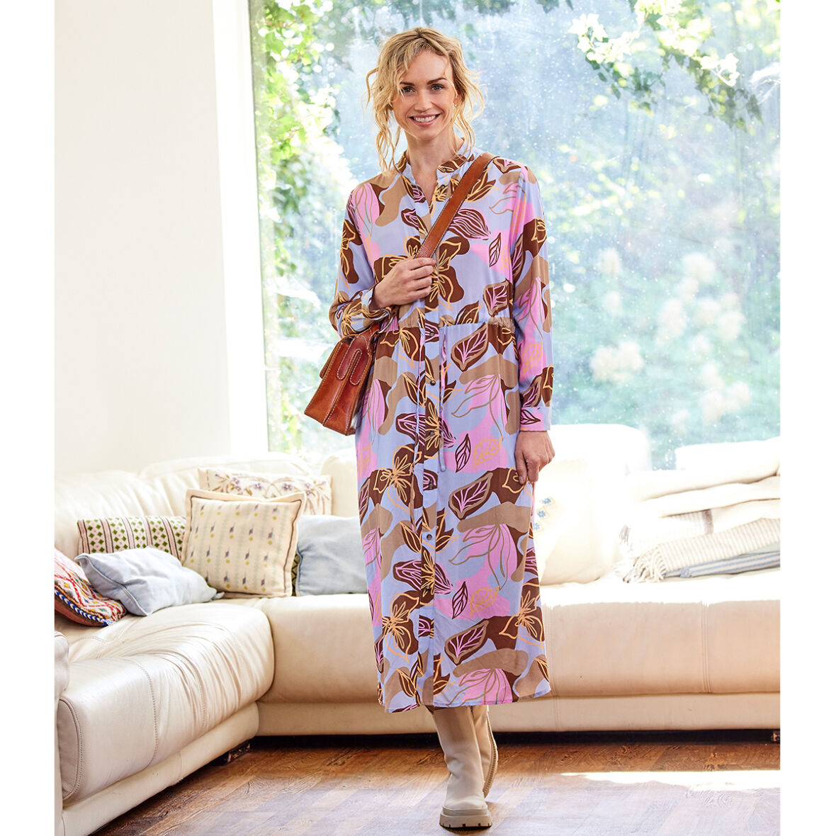 Kjolen er i et virkelig flot print og er gennemknappet.