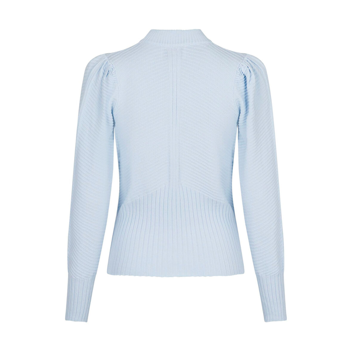 Strikken har lette puf ærmer og fine rib detaljer.