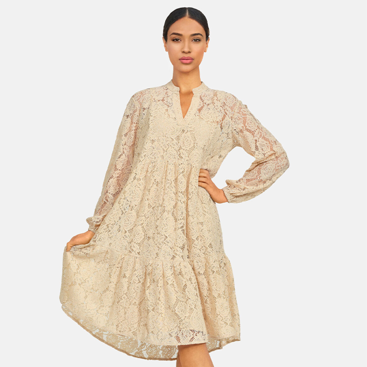 Smukkeste kjole fra Love & Divine med flotte flæsedetaljer.