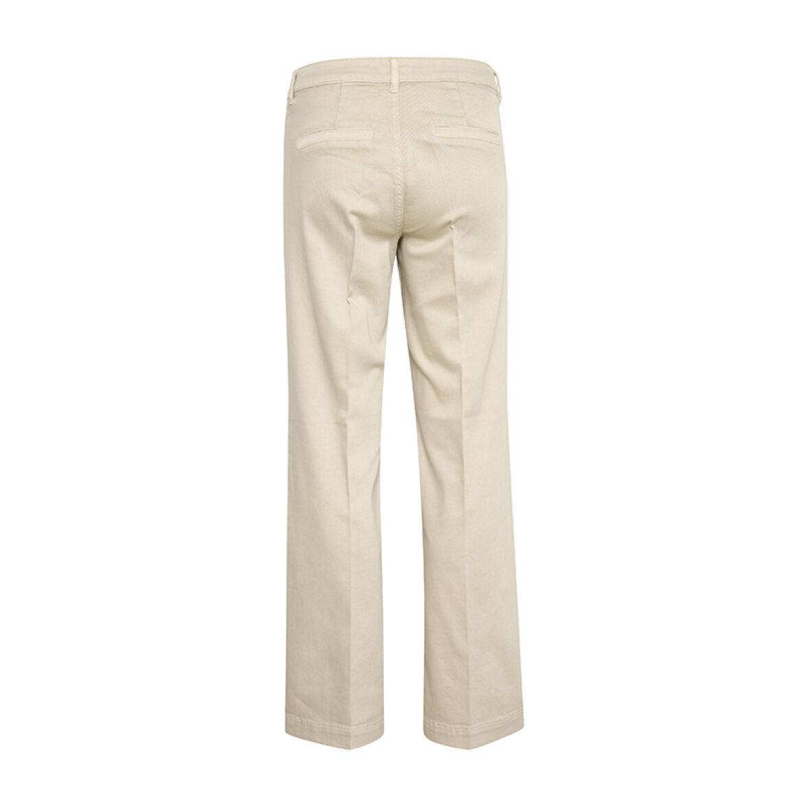 Buksen har skrålommer samt detalje baglommer og lukkes med lynlås samt hægte.