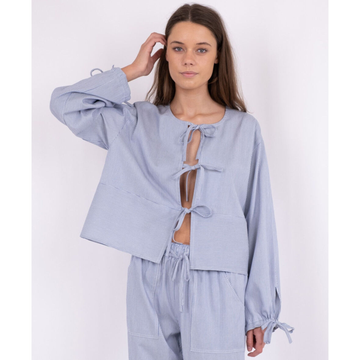 Flot stribet skjorte fra Neo Noir som lukkes foran med bindebånd.