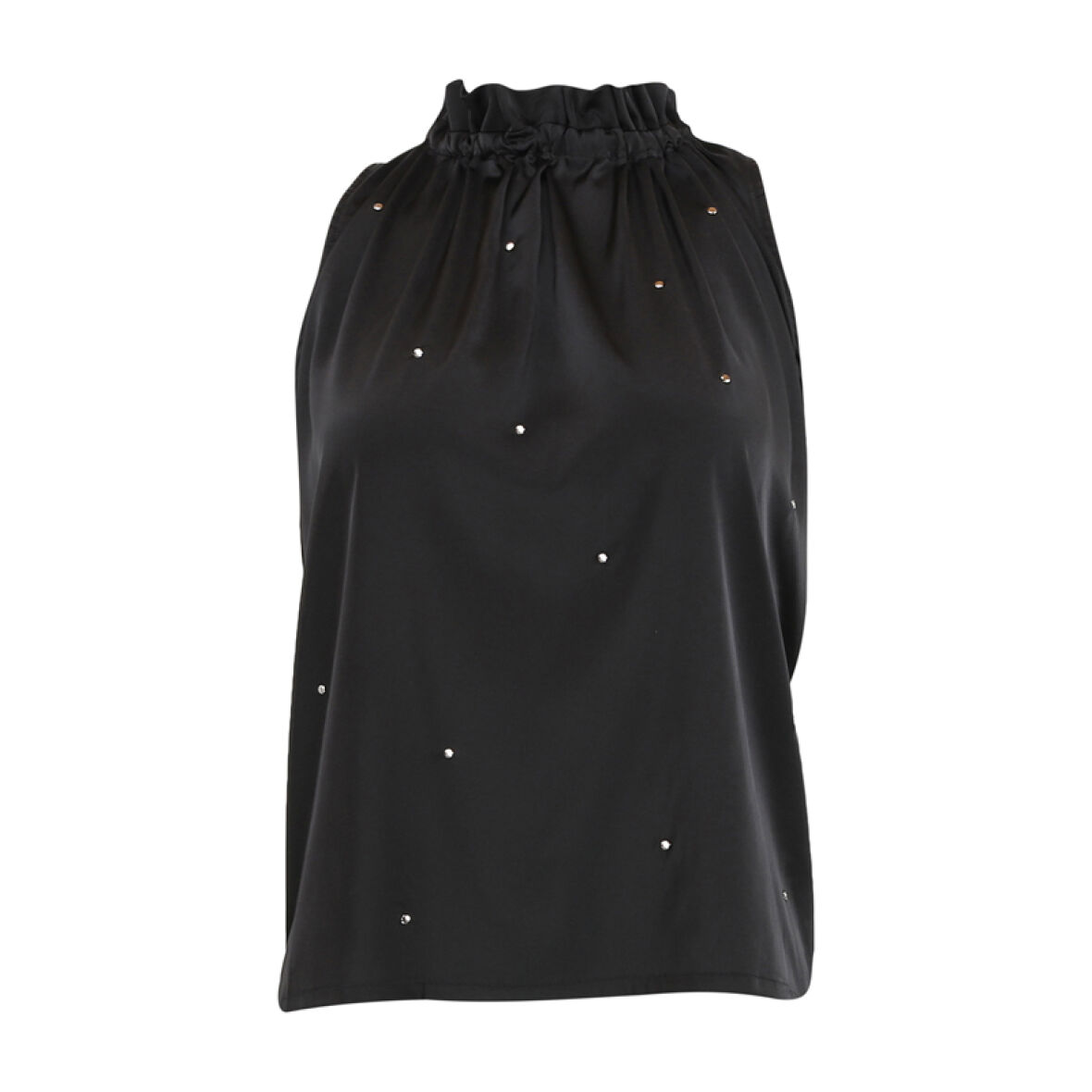 Smuk top fra Continue uden ærmer i flot satin-kvalitet med nitter på fronten.