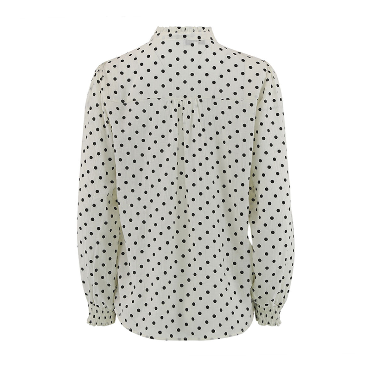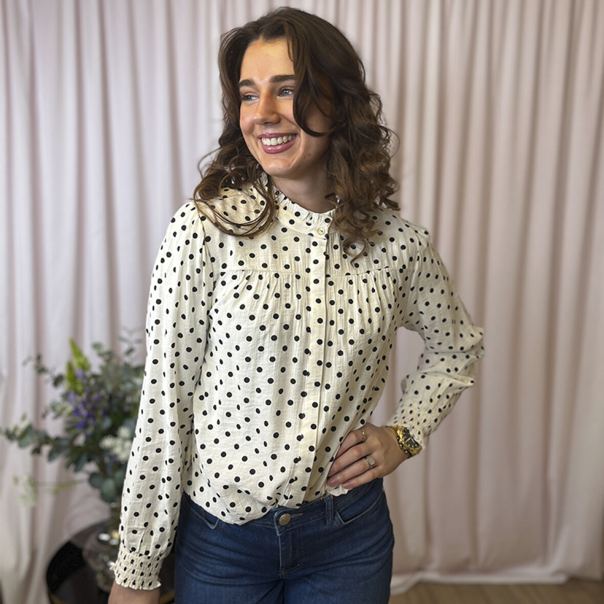 Skøn polkaprikket skjorte fra Continue med fine detaljer.