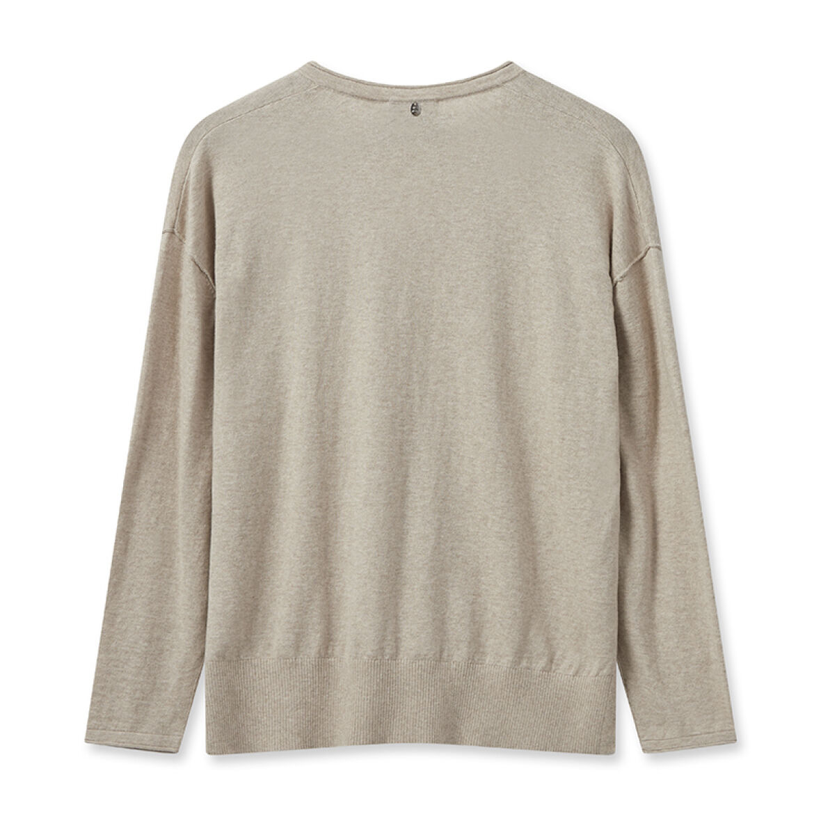 Striktrøjen har v-hals, lange ærmer og en lille slids i hver side forneden.