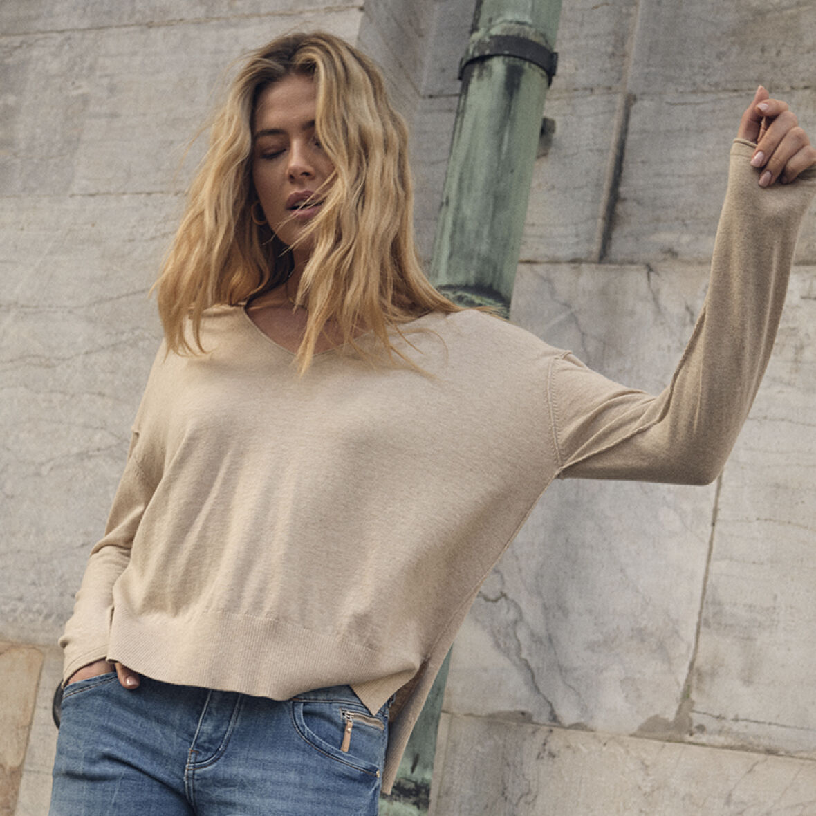 Skøn strik fra Mos Mosh i den blødeste kashmir- og bomuldsblanding.