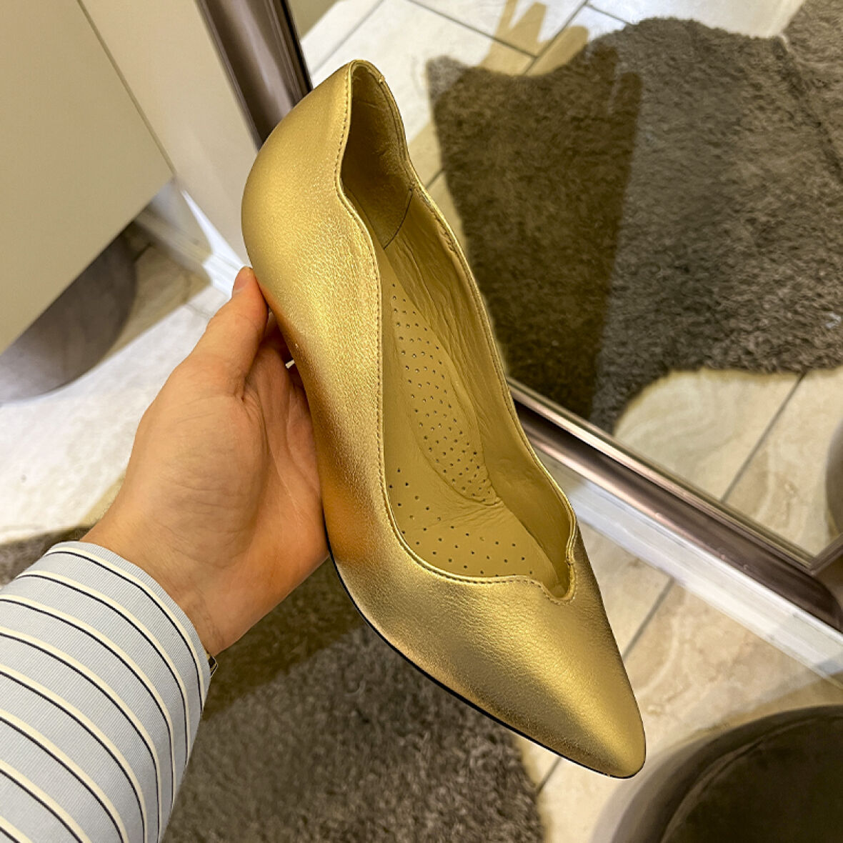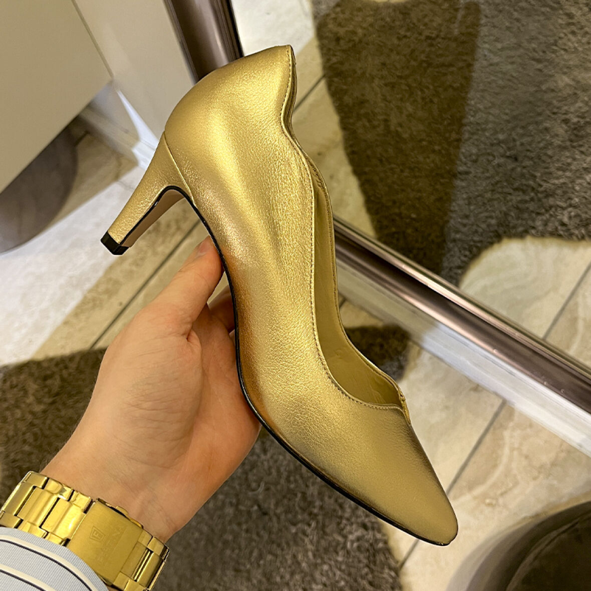 Stiletterne har en overdel i læder med en flot bølget kant, som får foden til at fremstå smallere.