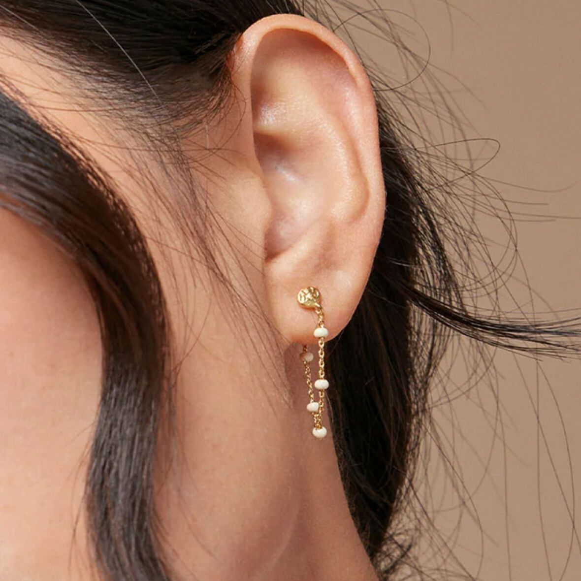 Flot kæde ørering fra Enamel med hvide smukke perler.