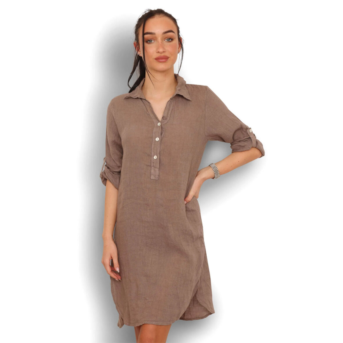 Lækker hør kjole fra Copenhagen Luxe med ærmer med mulighed for opsmøg.