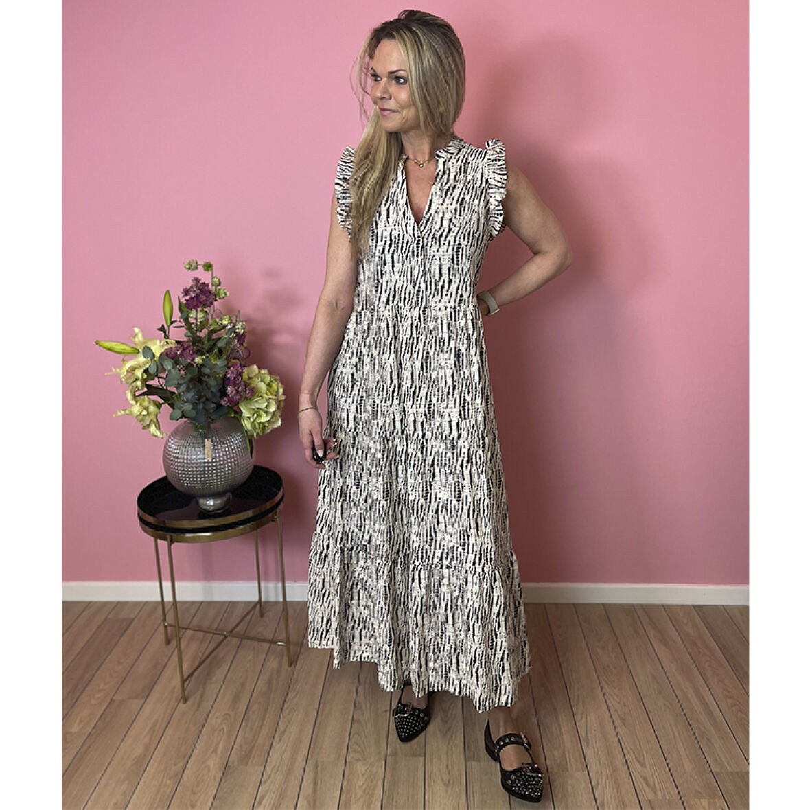 Flot printet kjole fra Co'couture med smukke flæse detaljer ved ærmegabet.