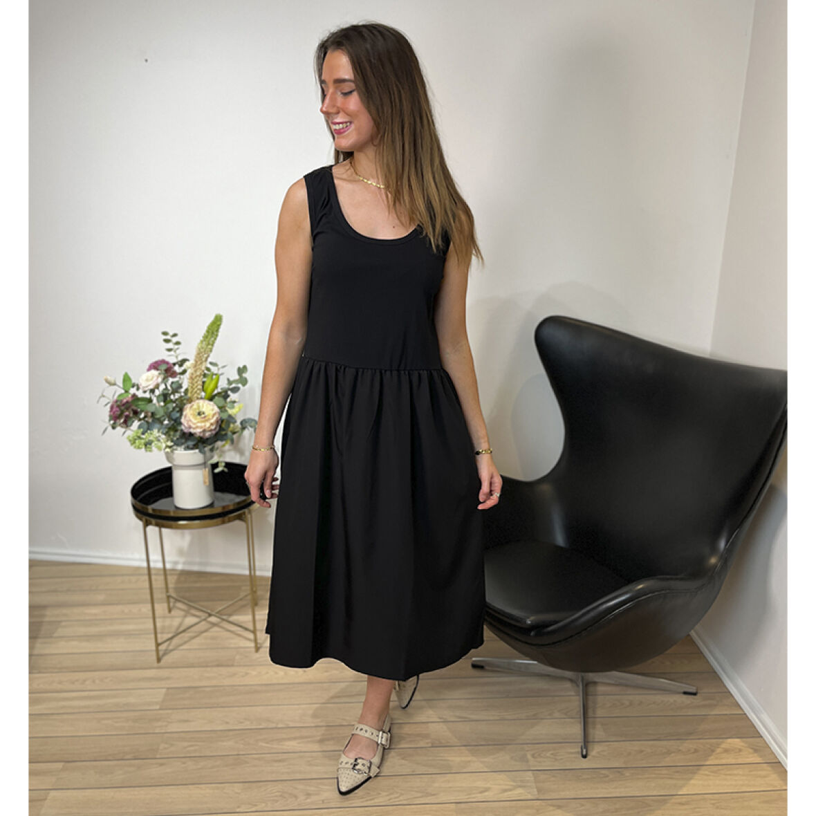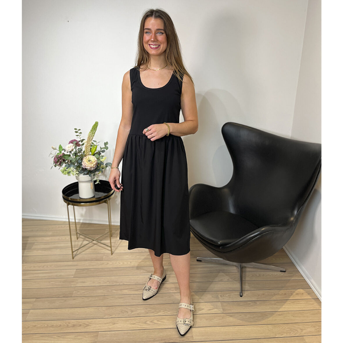 Smuk kjole fra PBO med brede stropper og lommer i siden.