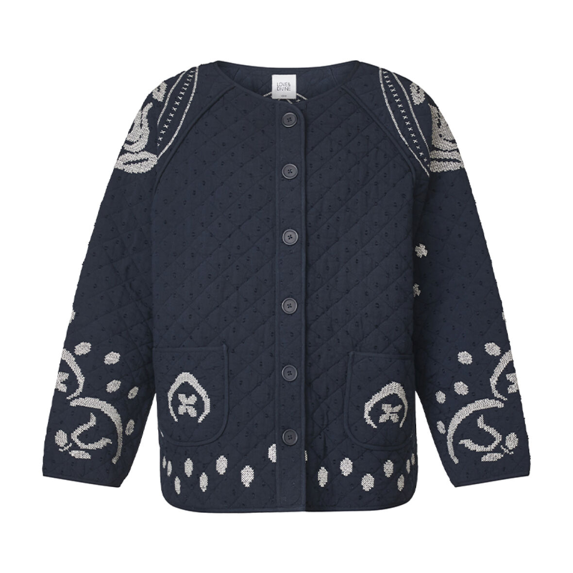 Skøn quiltet jakke fra Love&Divine med det flotteste broderi i kontrastfarve.