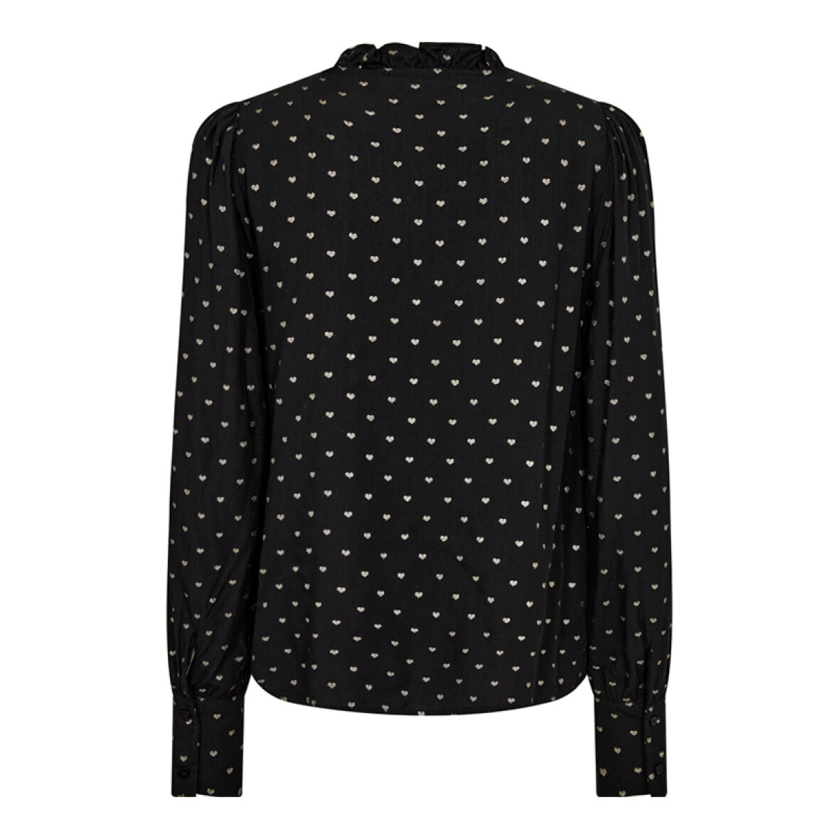 Hjertemønster: Blusen er prydet med et diskret, glitrende hjertemønster, der skaber et romantisk og festligt udtryk.