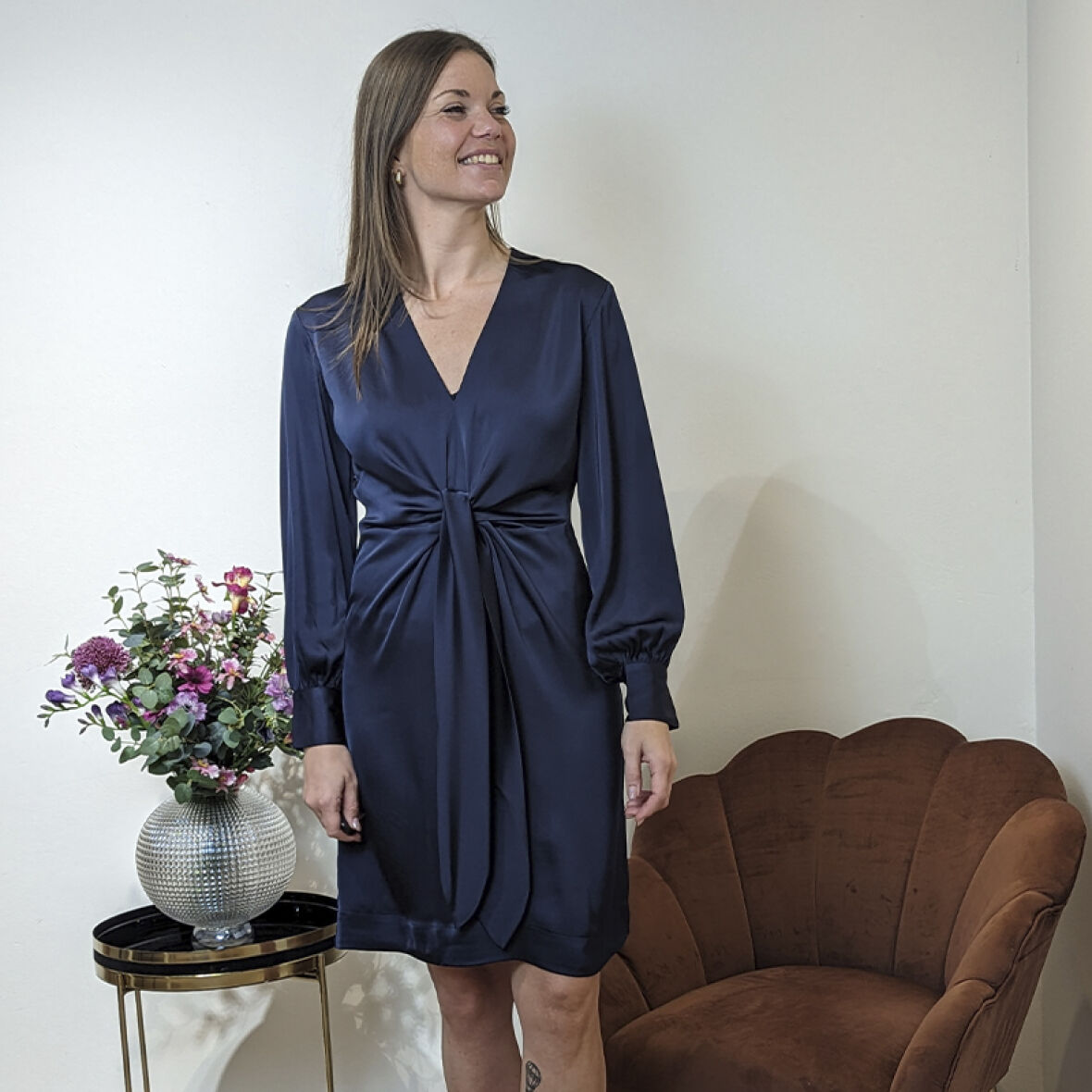 Denne kjole har en flot front detalje som går i siden, og skaber en flot effekt.