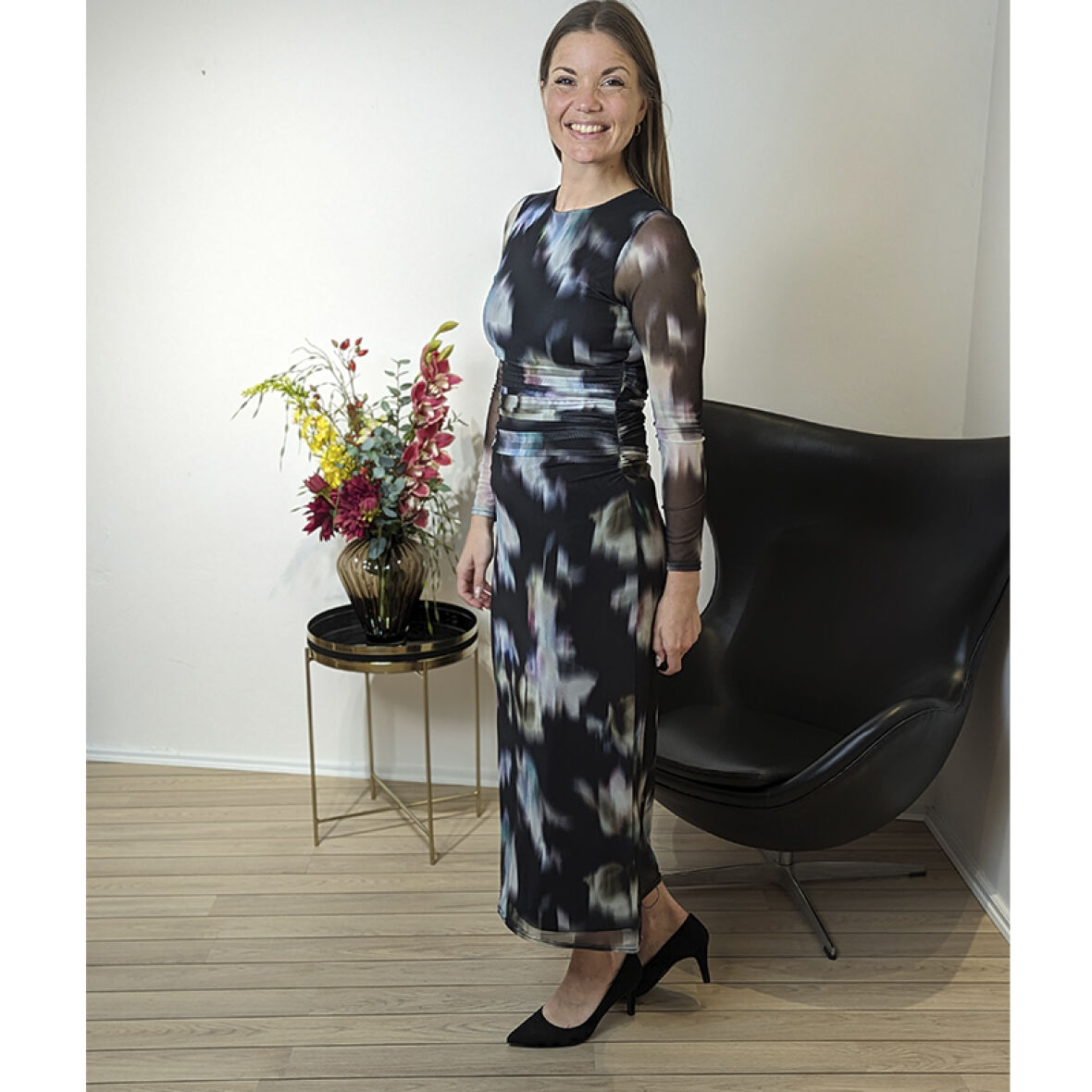Kjolen har lange ærmer og en smigrende pasform, der fremhæver din personlige stil.