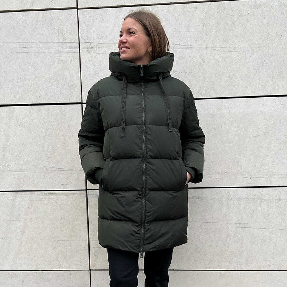 Og så er den fyldt med ultralette dun, som gør den dejlig varm at have på.