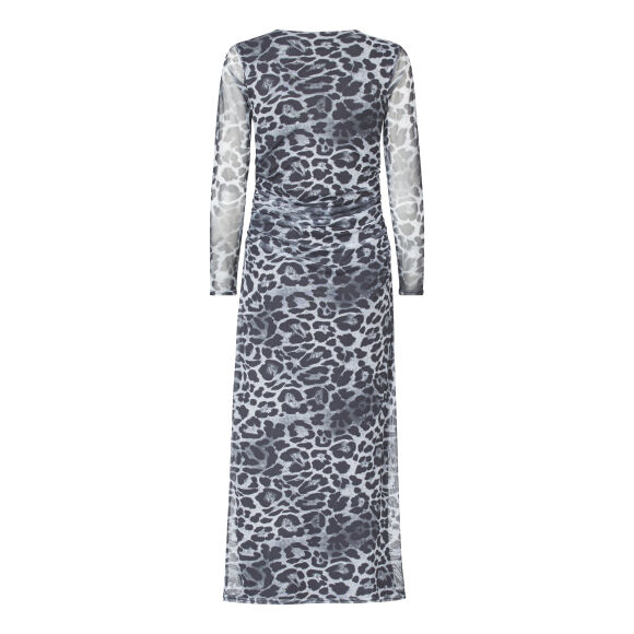Det grå leopardmønster giver et moderne twist, mens den klassiske silhuet opretholder en tidløs elegance.