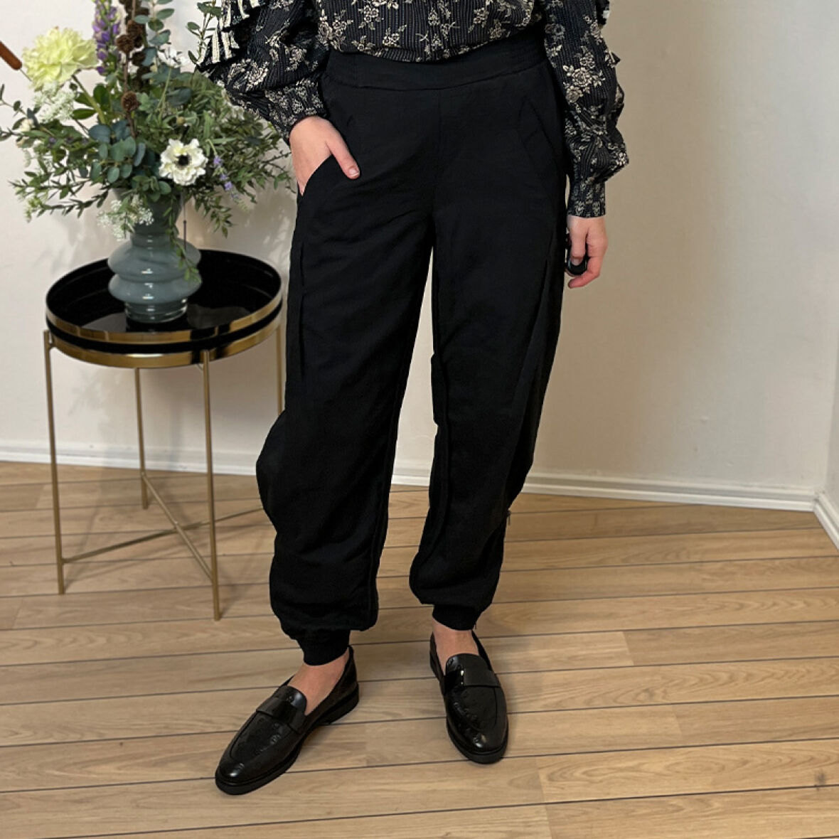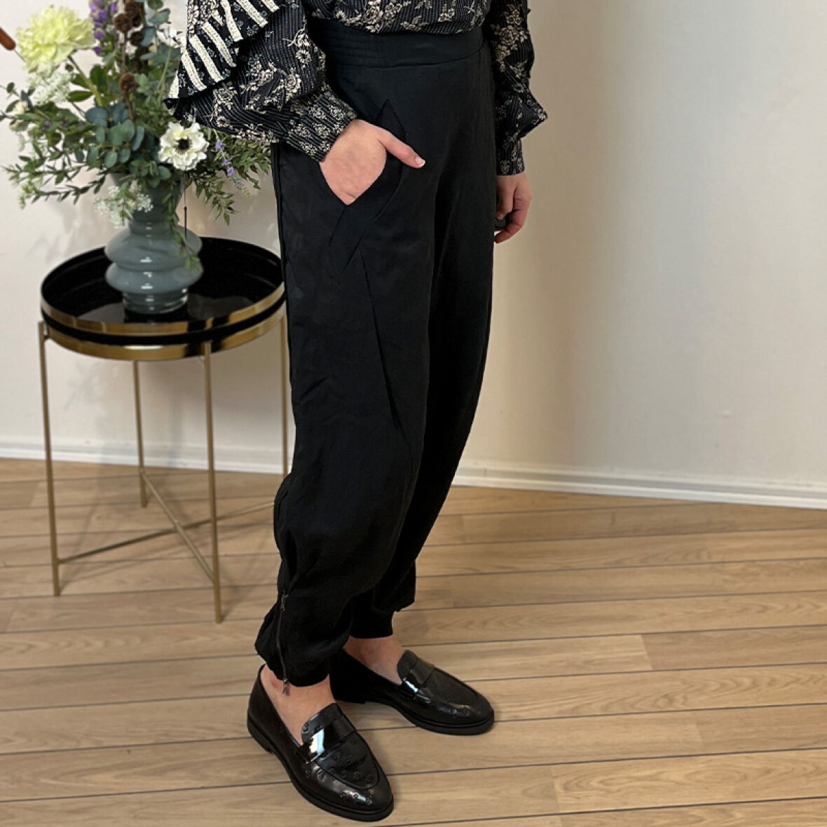 Bukserne har sidelommer med en enkel og funktionel syning, samt lynlås ved anklerne, som giver mulighed for at tilpasse benvidden.